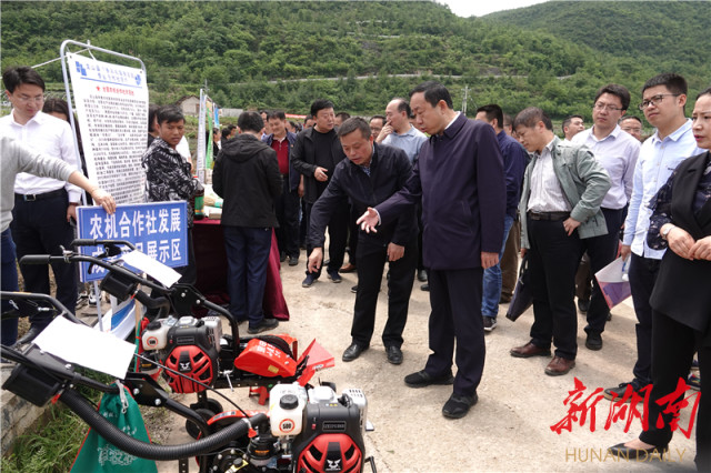 上午,与会人员到花垣县吉卫镇夜朗坪村茶叶基地和吉卫镇农垦场现代农机专业合作社水稻基地,进行现场勘查。