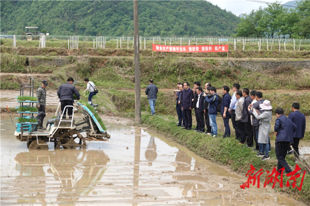 何益群等观摩机械化插秧