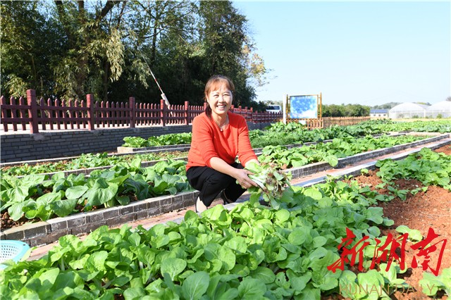 正在菜地里施肥劳作的村民文万桃为农村改厕工作点赞。 范远志 摄