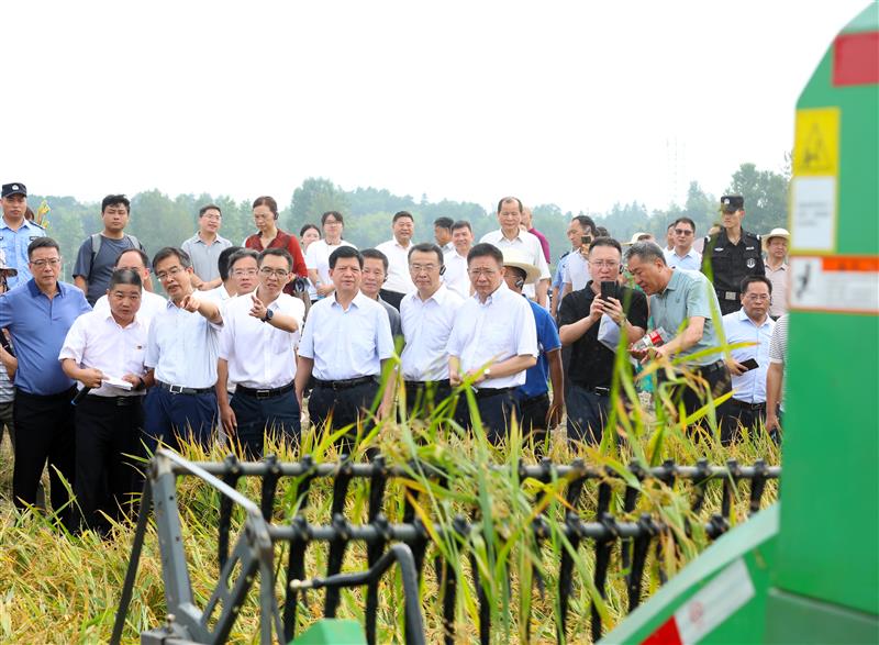 湖南省第一届水稻机收减损技能大比武活动现场。