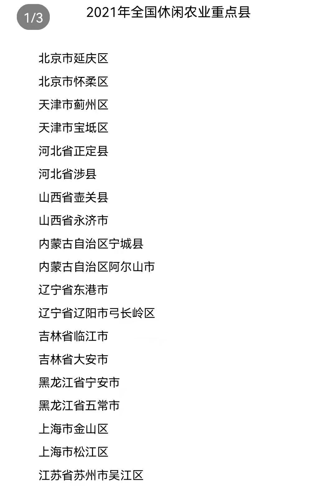 首批全国休闲农业重点县名单