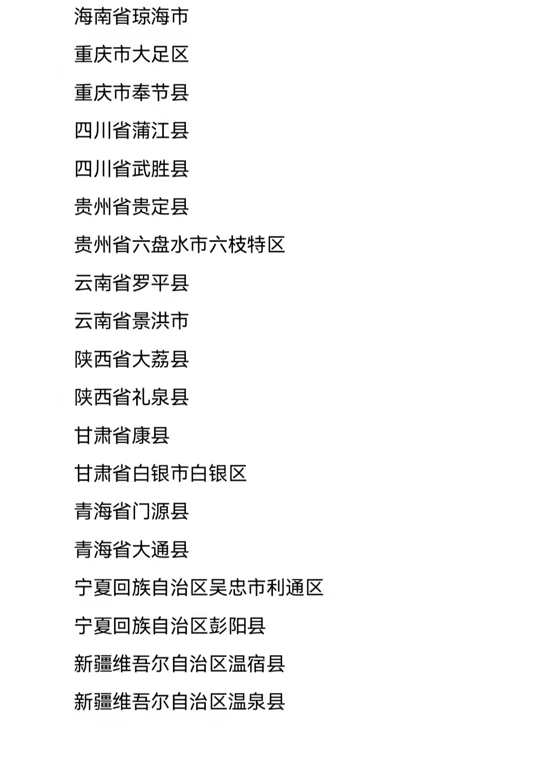 包括北京市延庆区等60个县(市、区)在内的