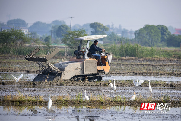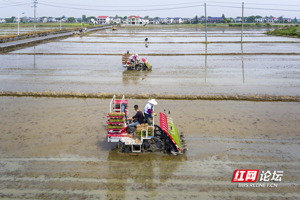 ▲图说:4月20日谷雨,雨生百谷,它是春季的最后一个节气,同时也是播种移苗的最佳时节。乡村四月闲人少,才了蚕桑又插田。春耕时令到,望城大地,一片生机,在高塘岭街道新阳村乡民种植专业合作社,成片的农田里拖拉机、旋耕机、插秧机往来穿梭,一派春耕春种的忙碌景象。