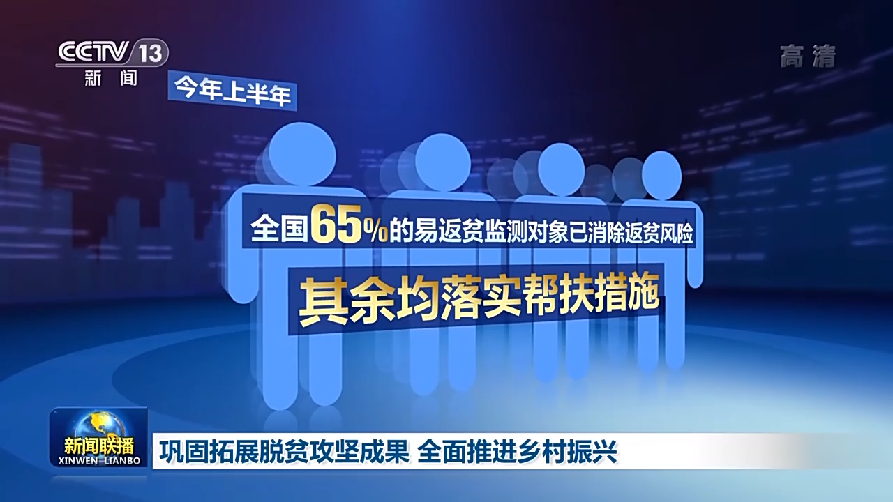 最新数据显示,进入全面实施乡村振兴战略的新发展阶段,我国30多项过渡期衔接政策已经出台实施,防止返贫动态监测帮扶机制全面建立;今年上半年,全国65%的易返贫监测对象已消除返贫风险,其余均落实帮扶措施。
