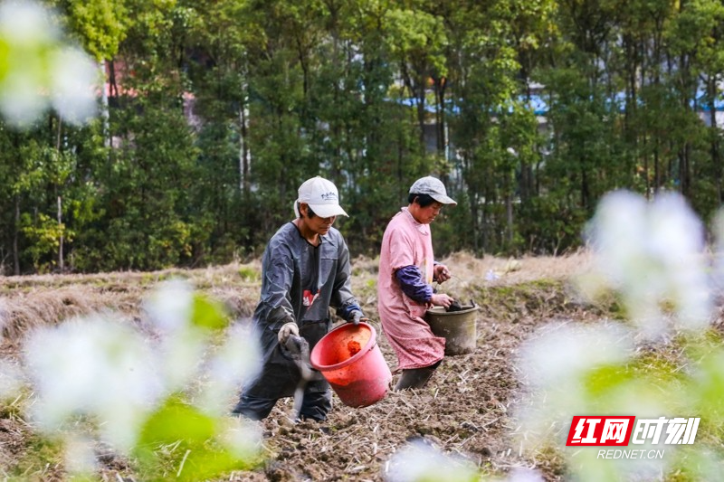 红网时刻新闻3月5日讯(通讯员 刘贵雄 陈祉凝)3月5日,湖南省永州市新田县骥村镇杨家村,村民在田间挖土施底肥,准备种植农作物。惊蛰节气,新田县的农民抢抓农时开展农事活动,田间地头呈现一派繁忙景象。