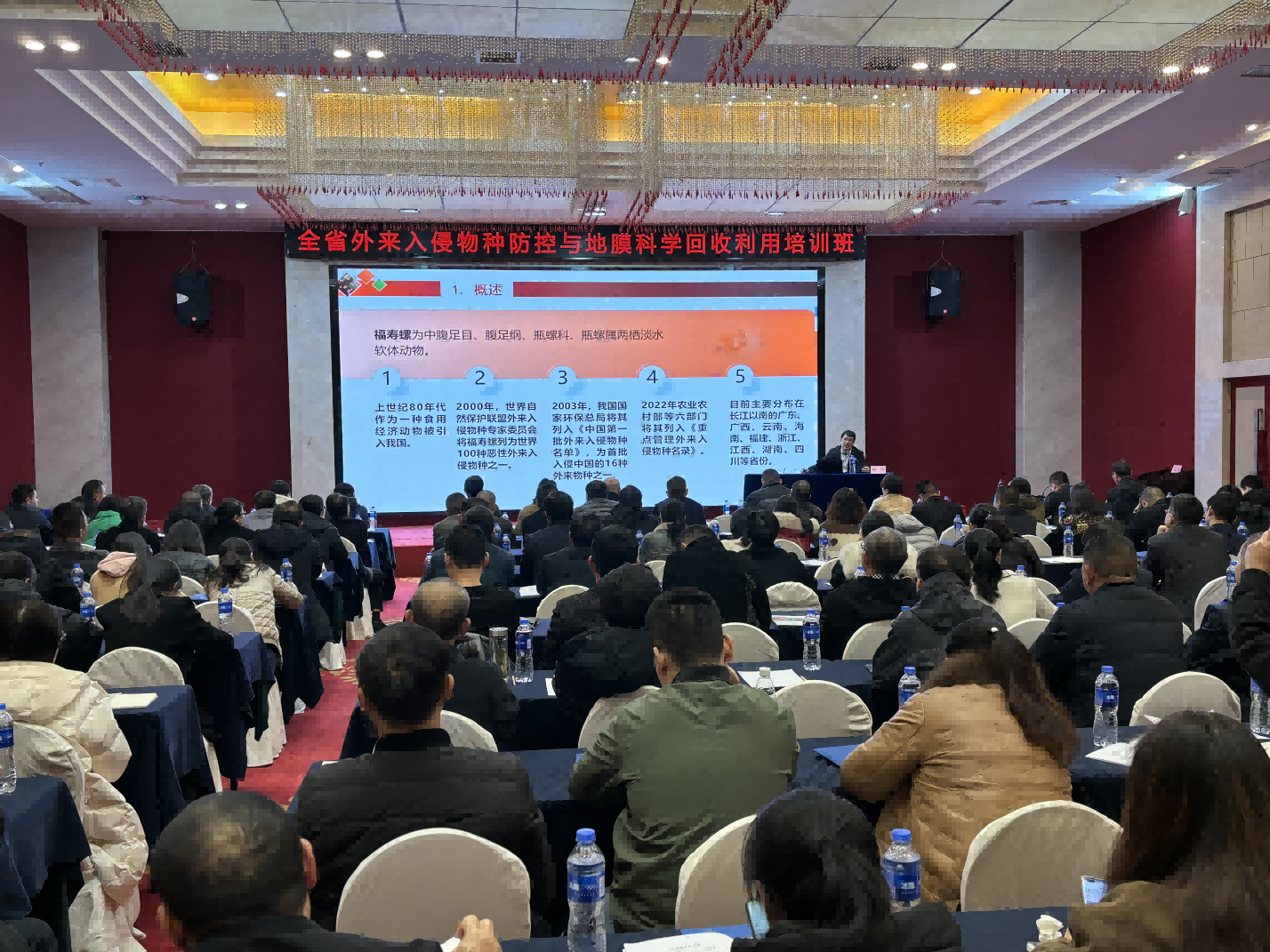 湖南农业大学有关专家应邀开展了技术培训讲座,就湖南省外来入侵物种防治现状,福寿螺综合防治技术,地膜科学使用回收试点项目建设等内容进行深入讲解和现场答疑。